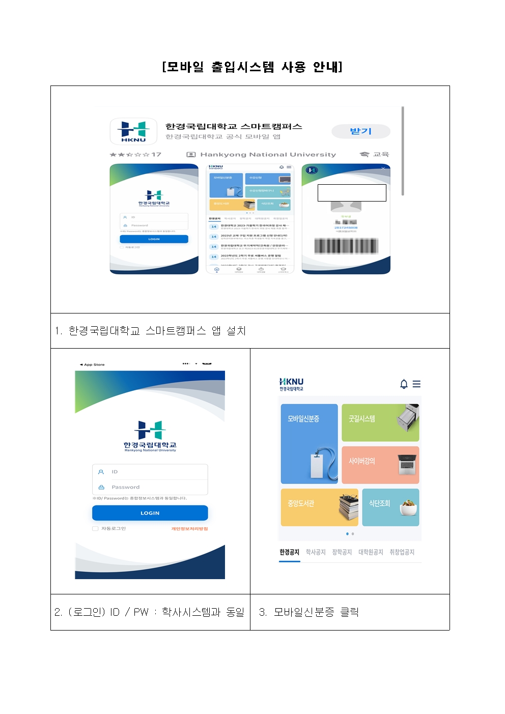 모바일 출입 시스템 신청이 안되어 신청이 필요한 학생은